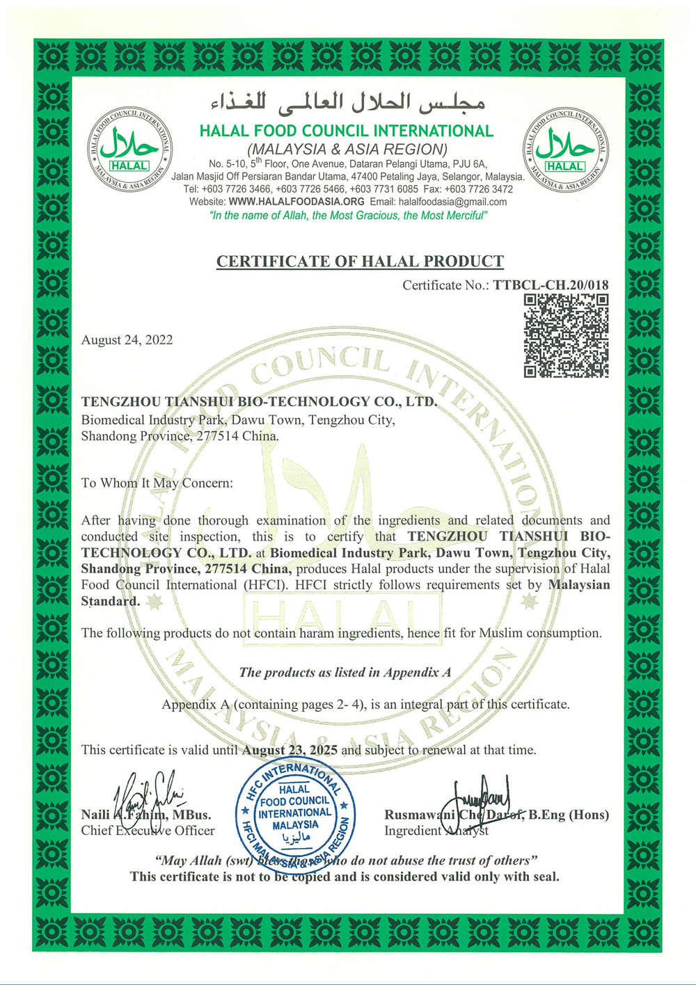 滕州市天水生物科技有限公司成立于2011年9月,是目前國內(nèi)雜環(huán)類合成食品香料、日化香料和醫(yī)藥中間體生產(chǎn)經(jīng)營的綜合性企業(yè)。坐落于山東省滕州市生物醫(yī)藥產(chǎn)業(yè)基地,總投資5000余萬元,占地面積約30000平方米,員工百余人。公司先后被評(píng)為高新技術(shù)企業(yè)、專精特新中小企業(yè)、科技型中小企業(yè),建有市級(jí)重點(diǎn)實(shí)驗(yàn)室1處,并先后獲得ISO9001質(zhì)量體系認(rèn)證、ISO22000食品安全體系認(rèn)證、kosher認(rèn)證和Halal認(rèn)證。是香精香料及食品配料協(xié)會(huì)會(huì)員單位及滕州市中小企業(yè)協(xié)會(huì)理事單位。